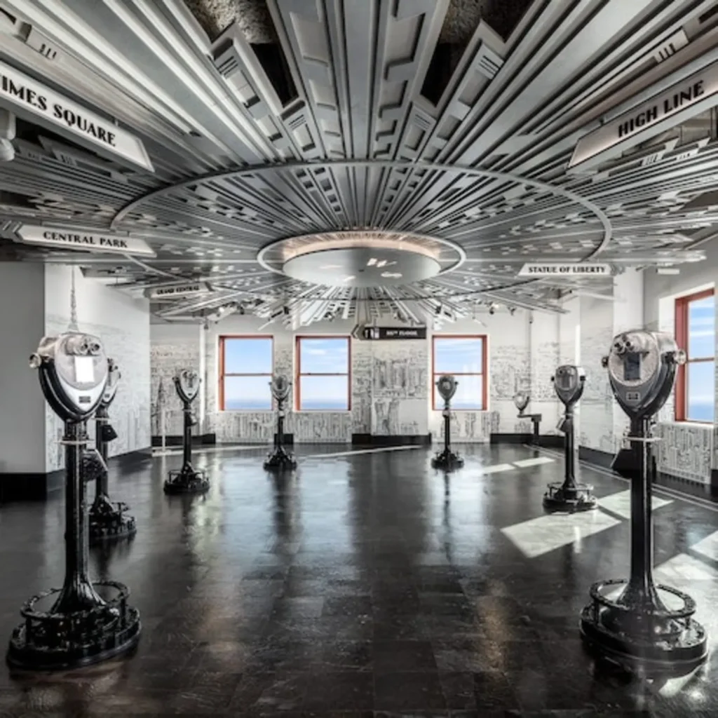 Explore interactive exhibits depicting the Empire State Building’s history and its cinematic significance.