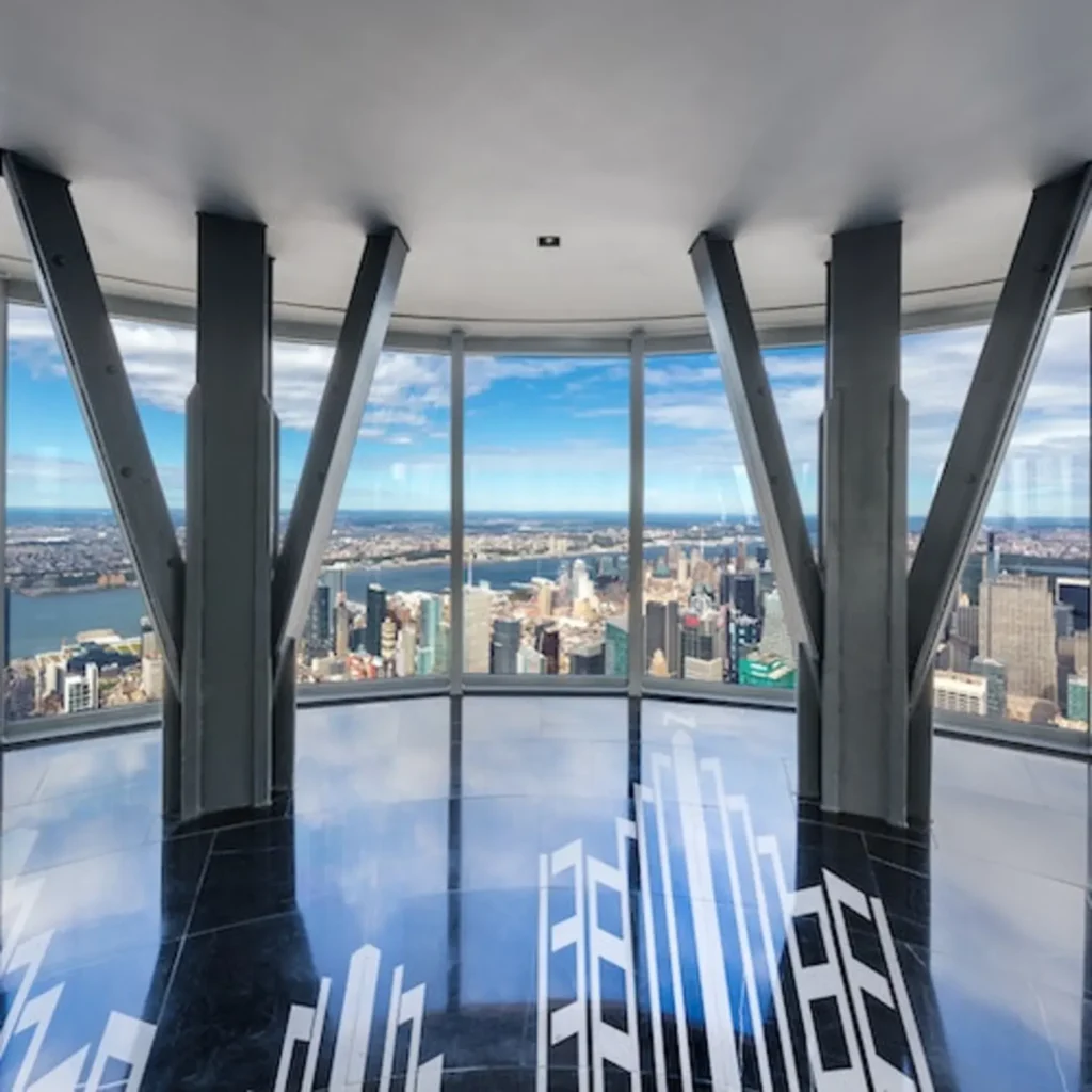 Ascend to the 102nd Floor Top Deck with floor-to-ceiling windows revealing expansive vistas across multiple states on clear days.