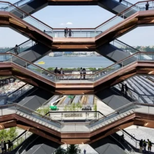 Given its location directly adjacent to the entrance of 30 Hudson Yards, Vessel serves as a ground-level architectural companion to the Edge experience. It offers a unique opportunity for visitors to explore modern structural design before or after ascending to the 100th-floor observation deck.