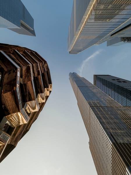 Take photos from different levels showcasing Hudson Yards and the surrounding skyline.