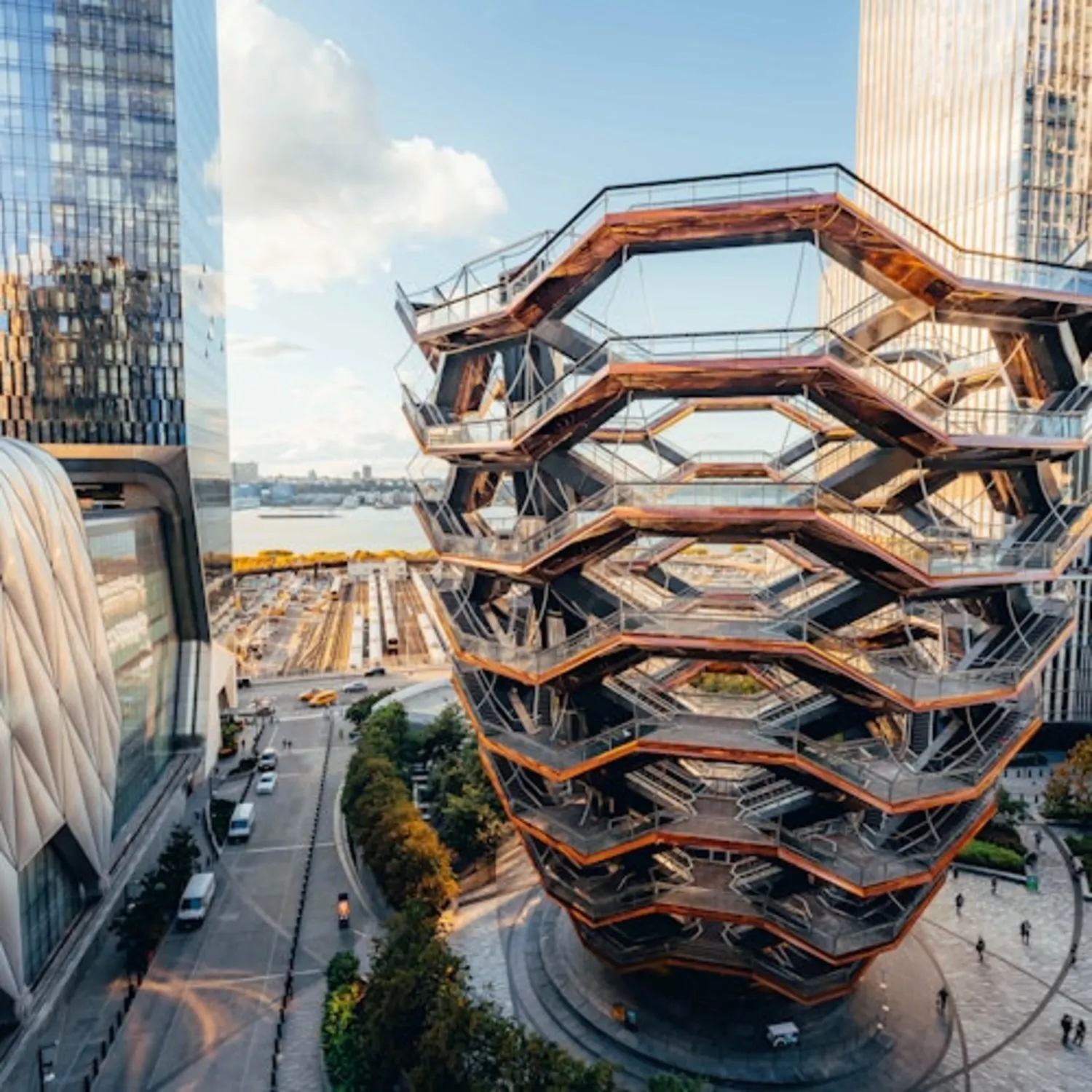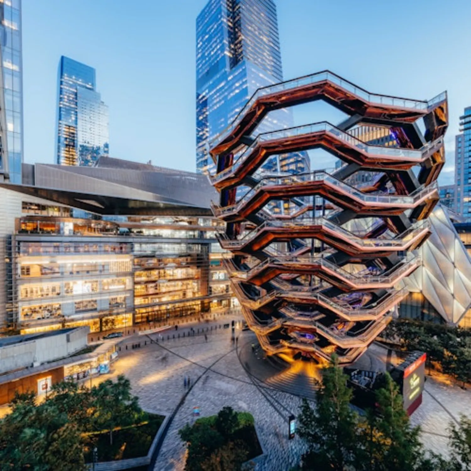 Given its location directly adjacent to the entrance of 30 Hudson Yards, Vessel serves as a ground-level architectural companion to the Edge experience. It offers a unique opportunity for visitors to explore modern structural design before or after ascending to the 100th-floor observation deck.